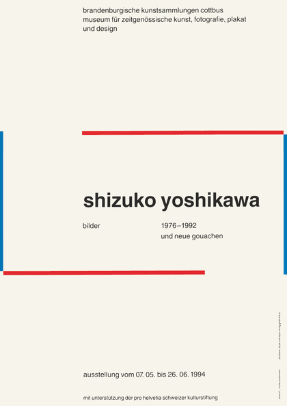 Yoshikawa had begun a Master’s in Architecture and Design after her degree in English language and literature. Encouraged by meeting two influential figures from the Ulm School of Design, Tómas Maldonado and Otl Aicher, during WoDeCo, in 1961 she decided to emigrate to Germany to study in Ulm. In 1962 Müller-Brockmann taught there as a guest in the department of visual communication, where he met Yoshikawa again. She subsequently accepted his invitation to come to Zurich in 1963 and collaborated on an extensive design project for Expo 64, the Swiss National Exhibition. Müller-Brockmann and Shizuko Yoshikawa married in 1967.