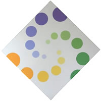 götz pochat, prof. dr., graz: '...diese tendenz zu einer loslösung von der strikten rasterform und einer dynamisierung der komposition lässt sich in den grossen monumental anmutenden tondi der letzten jahre feststellen. die farbkreuze geraten in bewegung, treiben von dem energiegeladenen zentrum nach aussen, werden vom dem kreisrand überschnitten, streben nach verräumlichung, werden einer allgemeinen, den gesamten kosmos ergreifenden bewegung unterworfen, die sich unter steter beschleunigung endlos ausweitet. wiewohl immer noch den strengen gesetzen der komplementären gegenüberstellung, der drehsymmetrie und spiegelung verpflichtet, von der mitte hell nach aussen dunkel, und auch umgekehrt, von der mitte dunkel nach aussen hell in konträrer weise, transparent und gesättigt in lebendiger spannung und beziehung zueinander stehend, gewinnen die farbkreuze nun grösseres eigenleben und dynamik. spiralförmig bewegt, infolge der vergrösserung der kreuzformen zur peripherie hin, sich überlagernd, fliessend und immer stärker oder schneller nach aussen und vorne drängend, wird der betrachter im nachvollzug des elementaren geschehens von dieser bewegung ergriffen, weiss sich von denselben kosmischen kräften umfangen und in diesen prozess der ständigen bewegung und veränderung eingebunden. yoshikawa ist es nun gelungen, die strenge sprache und syntax elementarer grundformen und deren zusammenstellung mit der freiheit der dynamischen bewegung und ihrer selbstreferentiellen weiterentwicklung zu verbinden - prinzipien, die das organische leben in der welt und die vorgängige im kosmos gleichermassen verbinden. aus der tradition der konkreten kunst werden wir zu den wurzeln der existentieller selbstfindung zurückgeführt. diese verinnerlichung und versenkung die schon lange den weg des zen und die japanische tradition und praxis auszeichnet, scheint auf die konvergenz des westlich-rationalen weltentwurfs hinauszulaufen, in der das universum in einem expandierenden, von dynamischer ausweitung, energieballungen und entladungen beherrschten prozess noch wieder auf einen zustand entropischen gleichgewichts und harmonie zustrebt. es ist, als ob die kreisform oder tondi nun von den elementen selbst aufgegriffen, zugleich aber durch den spiralförmig dynamischen sog der bewegung durchbrochen, entgrenzt wird. auch wir werden als betrachter von ihr ergriffen...' aus yoshikawas ausstellungskatalog 'kosmische gewebe', contemporary sculpture center, tokyo, 1996